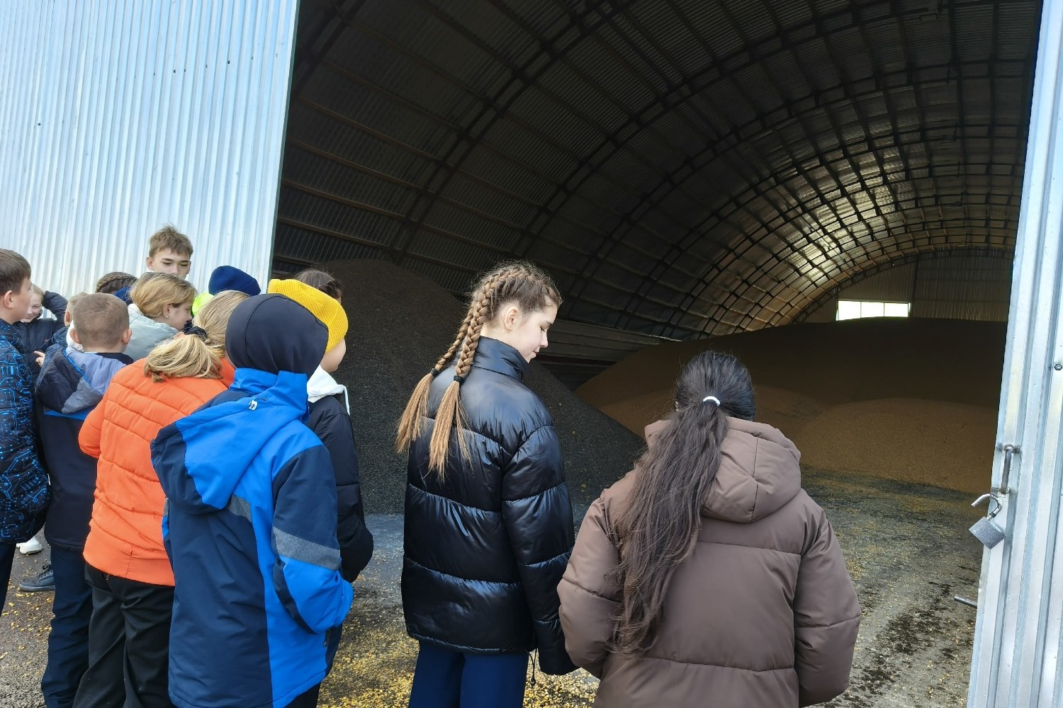 Главный механик, Александр Шкитин, провёл для ребят познавательную экскурсию, рассказав о всех этапах работы с зерном: от его сбора до хранения.