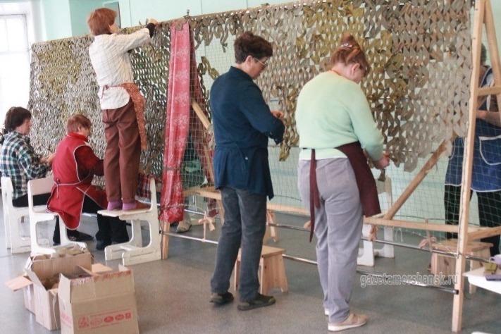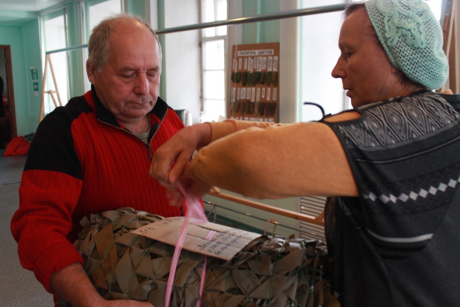 Создавать защитные спецсредства приходят люди разных возрастов. Плести такие сети — целая наука. В «мини-мастерской» установлены 4 станка, закуплены все необходимые материалы. У каждого — свой фронт работы. Одни надрезают ленты, другие вплетают их в сеть, но самое главное, что их всех объединяет, — желание оказать искреннюю помощь нашим героям не только добрым словом и молитвами, но и реальным делом.