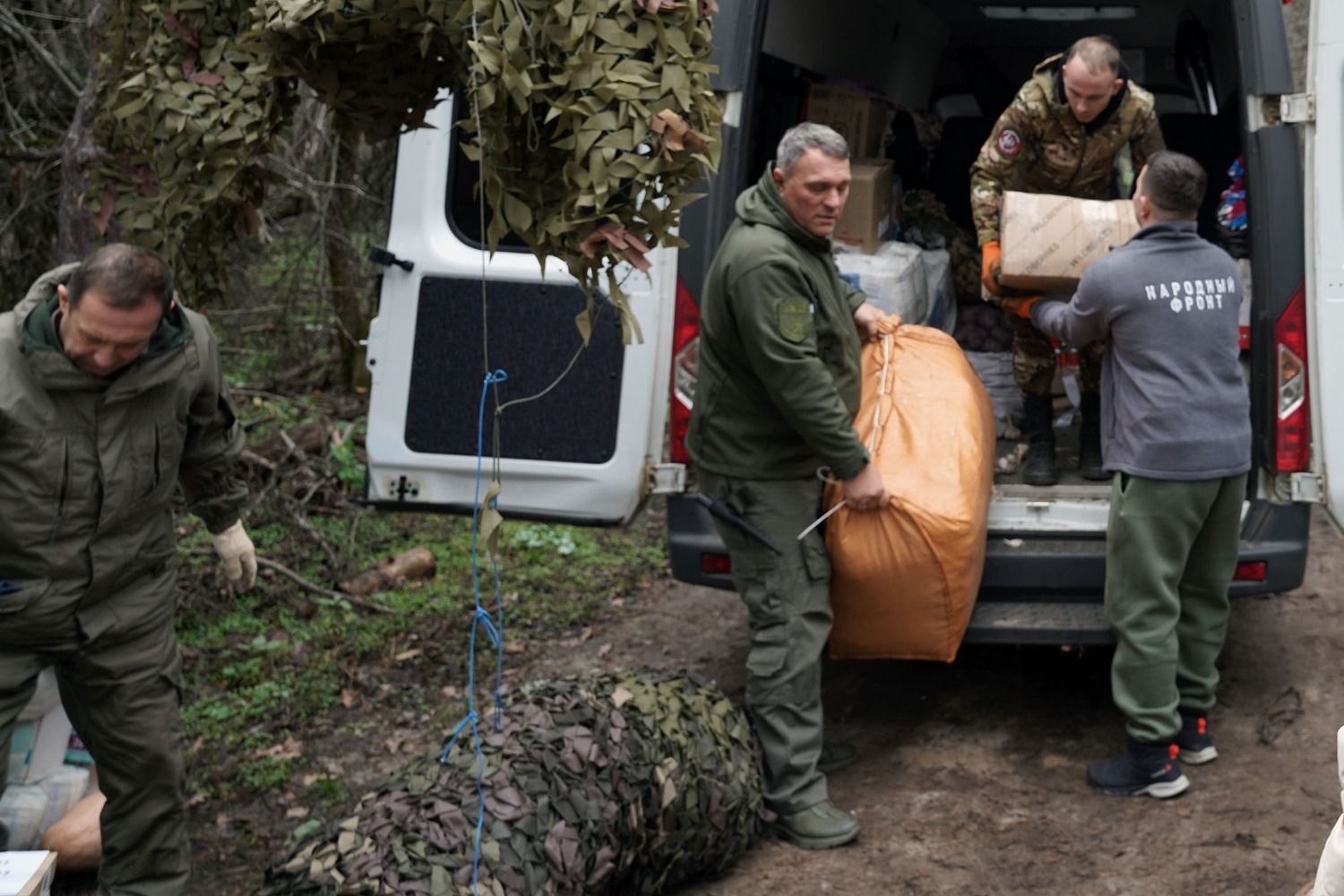 Затем путь волонтёров и гуманитарного груза лежал к отряду «Штурм».