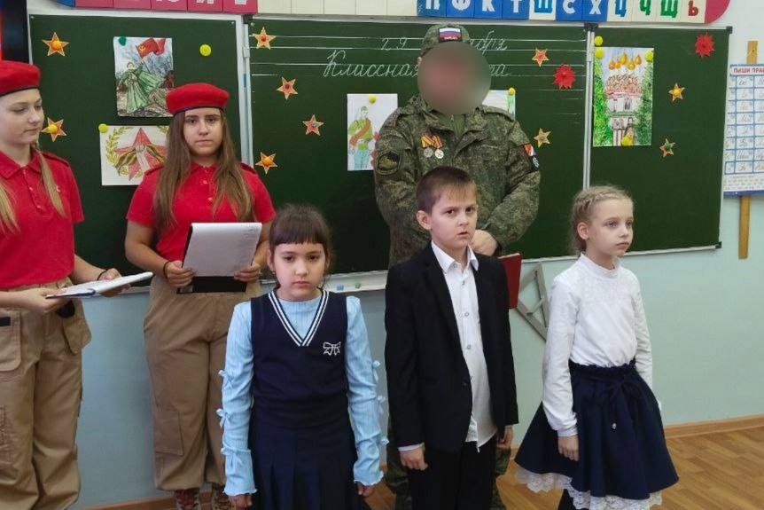 Актив юнармейского отряда «Пламя» совместно с советником директора по воспитанию Наталией Платицыной организовали для учащихся «Классную встречу». Почётным гостем стал участник специальной военной операции Кирилл.