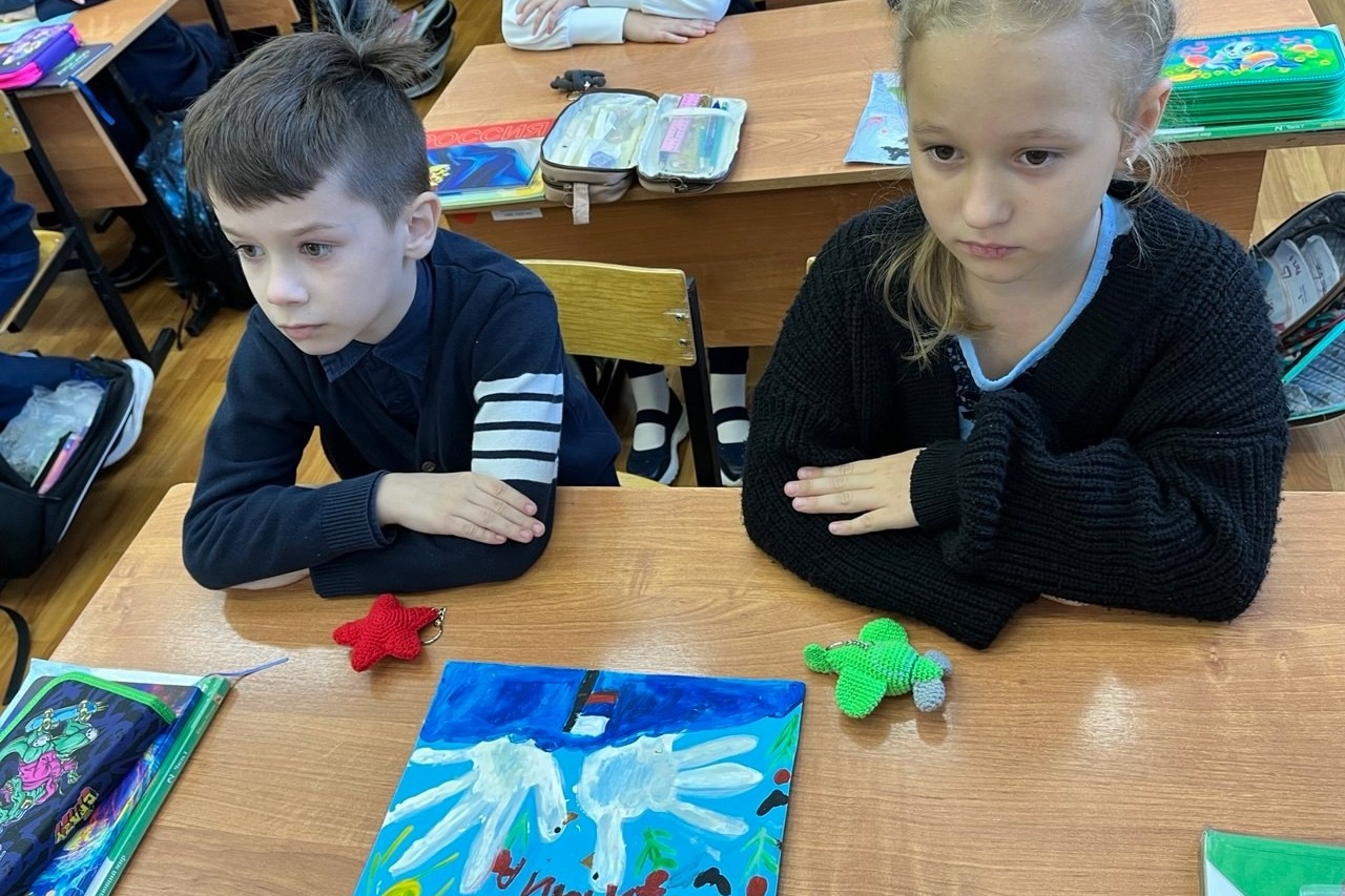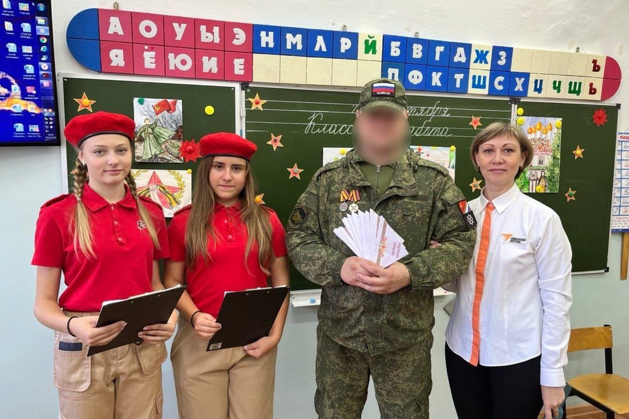 В завершение встречи участник СВО подарил школьникам книгу о героях Афганской и Чеченской войн. В ответ добровольческий отряд 5-Б класса, юнармейцы и орлята от всей души поблагодарили гостя, вручив ему трогательные письма, рисунки и обереги, созданные своими руками.