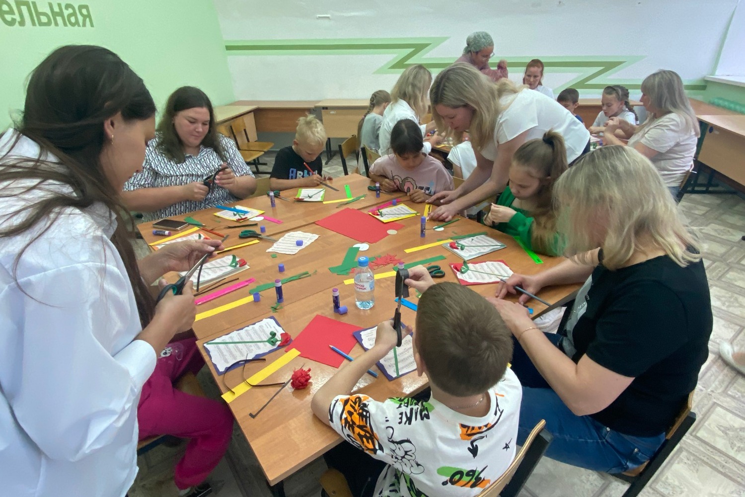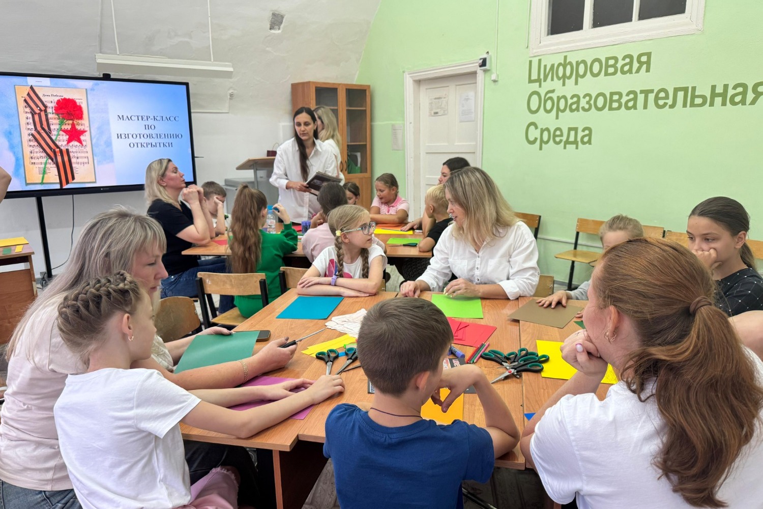 Команда проекта и родители организовали творческие площадки, посвящённые 80-летию Великой Победы. На каждой площадке участники создавали по два семейных креатива: