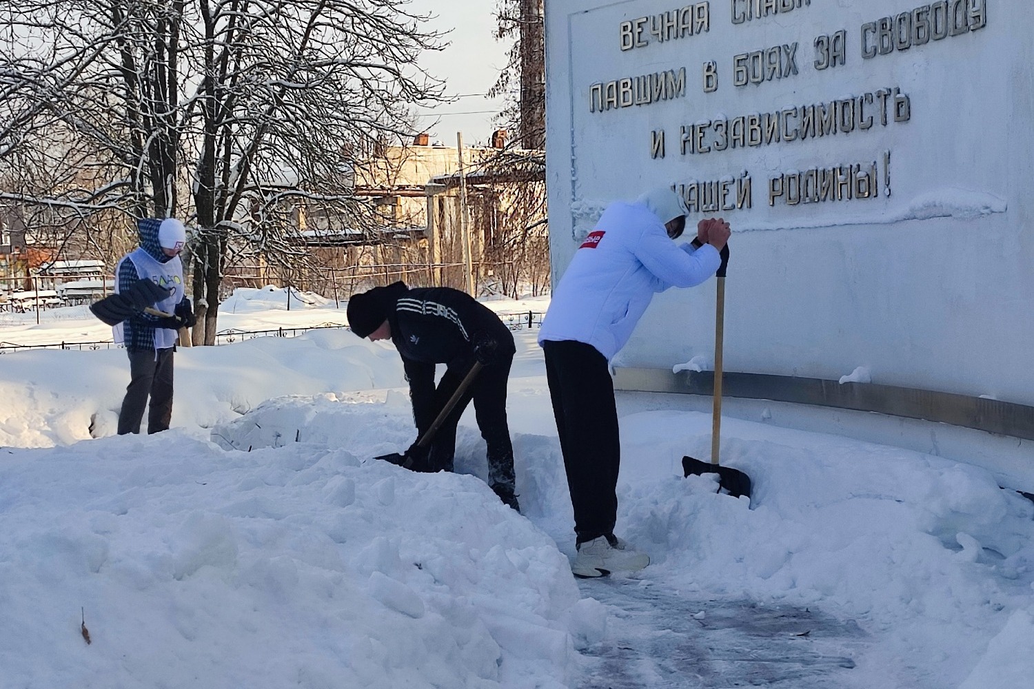 К примеру, несмотря на зимнюю погоду, участники волонтёрского отряда «Орлята» из гимназии вышли на уборку снега у воинских захоронений в ходе акции «Обелиск». Для ребят это не просто субботник, а важный урок уважения к истории.