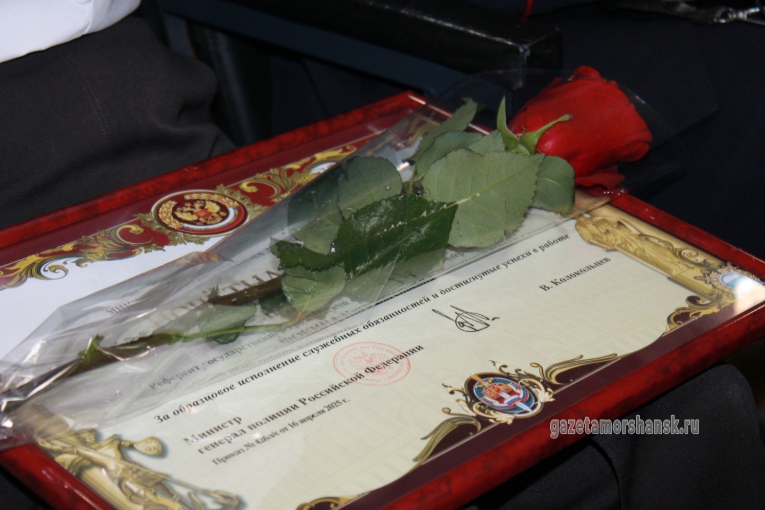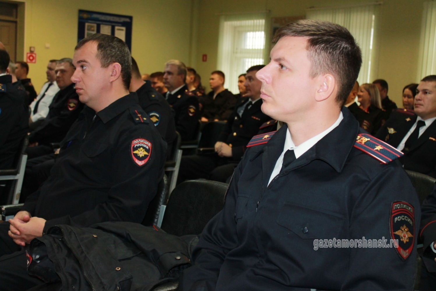 В актовом зале МО МВД России «Моршанский» состоялось торжественное собрание, посвящённое Дню сотрудника органов внутренних дел. Полицейских поздравил начальник отдела Юрий Ермаченко, который поблагодарил за службу, пожелал успехов в работе и благополучия в семьях.