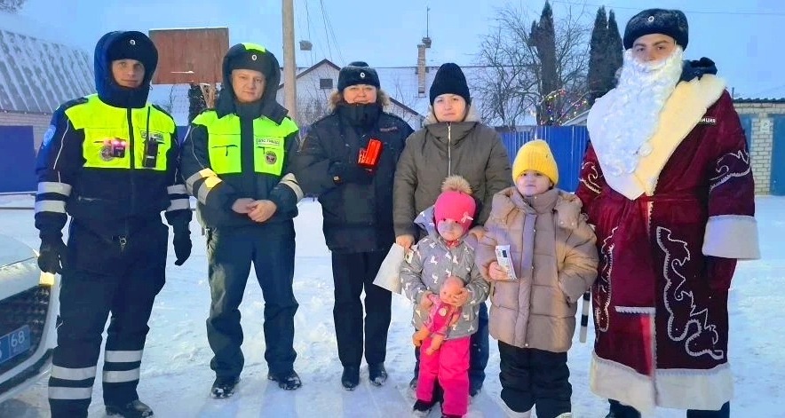 Рано утром сотрудники ГИБДД МО МВД России «Моршанский» посетили детский сад № 20 «Росинка», чтобы поздравить воспитанников с наступающим Новым годом. В игровой форме они провели мини-обучение основам личной и дорожной безопасности, а также вручили полезные подарки.