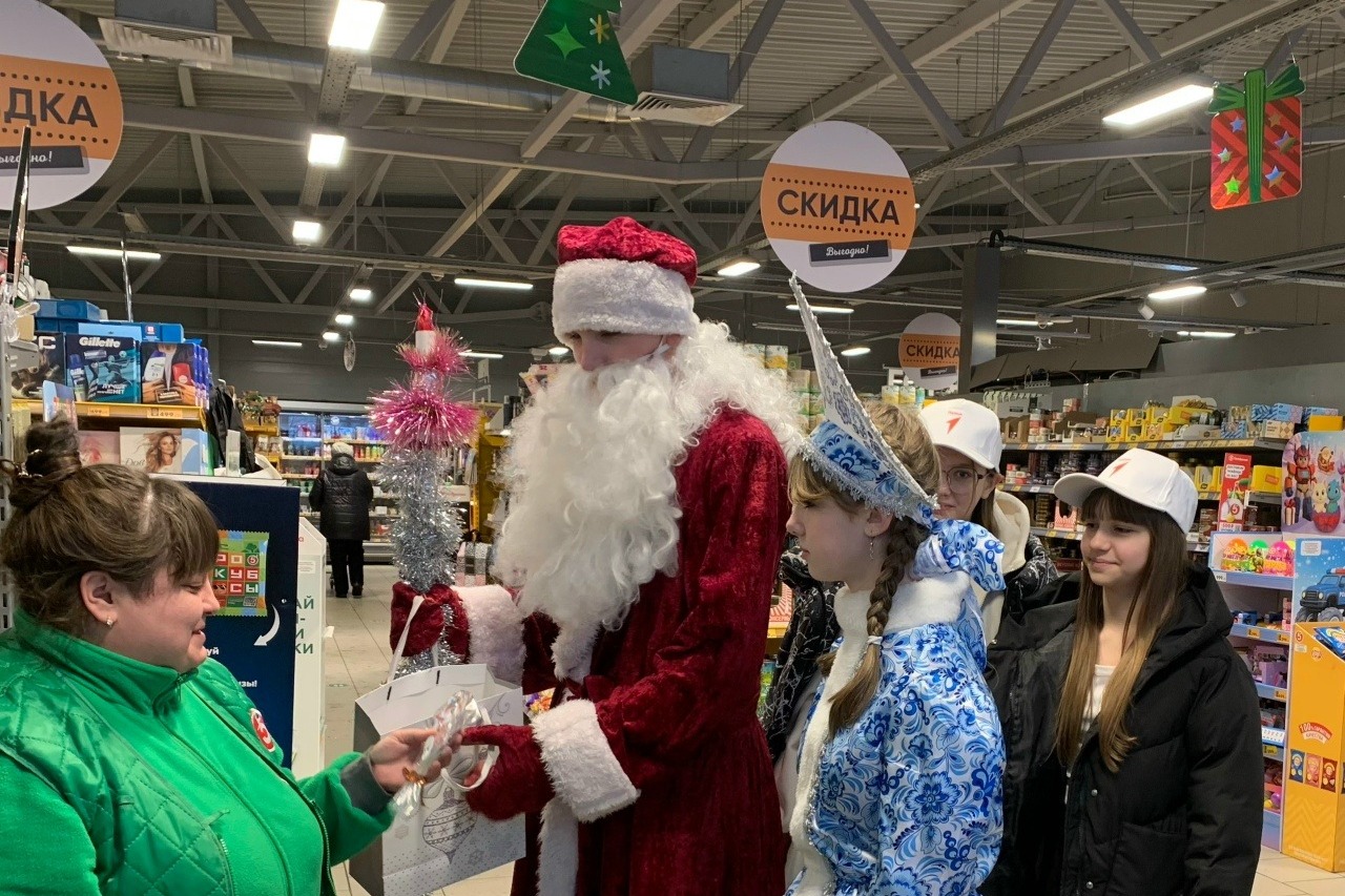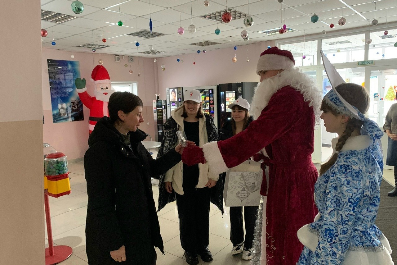 Волшебный дуэт побывал на железнодорожном вокзале, где поблагодарил сотрудников за их труд, позволяющий горожанам вовремя добираться до близких. В одном из супермаркетов сказочные гости поздравили продавцов и кассиров, которые в потоке покупателей создают первое праздничное настроение. Не остался без внимания и Ледовый дворец, где работников поблагодарили за возможность для детей и взрослых ярко провести долгожданные каникулы.