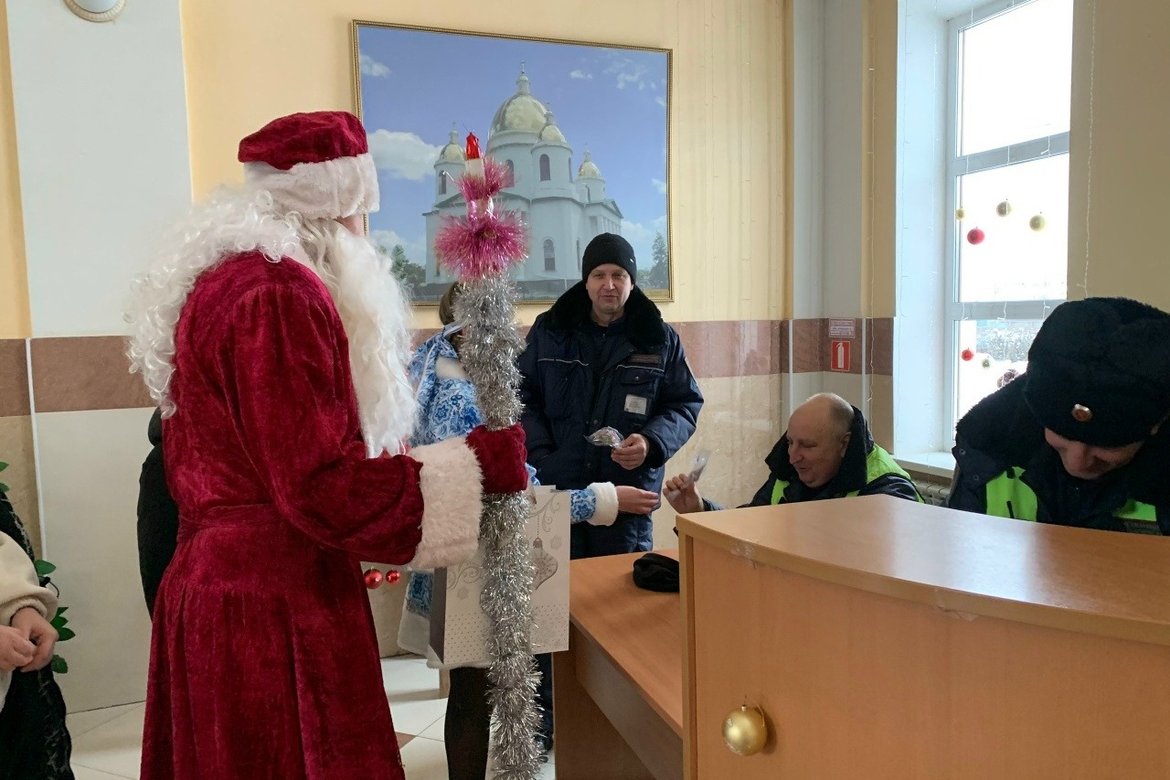 В последние дни уходящего года, когда город погружается в хлопоты, а график у многих становится особенно напряжённым, в Моршанске прошла необычная акция. Ученики и активисты Гимназии, перевоплотившись в Деда Мороза и Снегурочку, отправились с благодарственным визитом к тем, кто обеспечивает жизнь города в праздники.