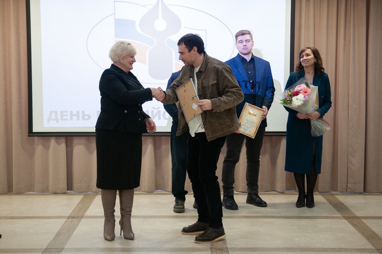 В рамках празднования руководитель тамбовского реготделения Союза журналистов России Раиса Наводченко вручила призы победителям творческого конкурса СЖР.