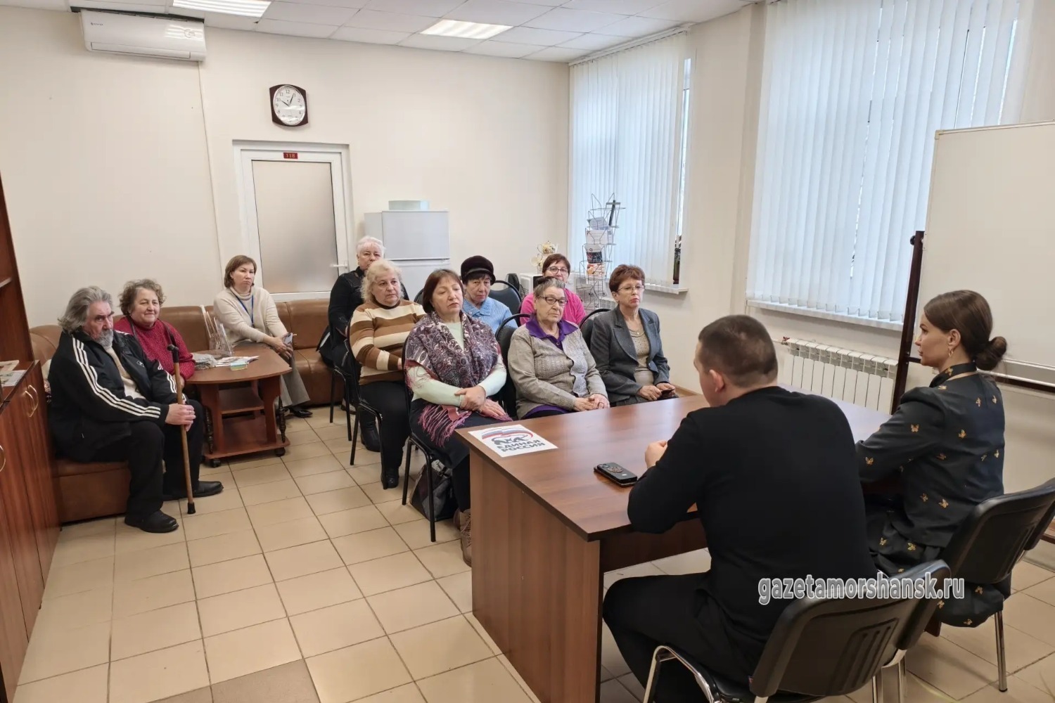 В Центре общения старшего поколения Отделения Социального фонда прошла встреча с посетителями «Клуба мудрецов», представителем местного Моршанского городского местного отделения Партии «ЕДИНАЯ РОССИЯ» Татьяной Стацук и заместителем координатора «Молодёжки Народного фронта» и членом Молодёжного парламента Тамбовской области Максимом Кобловым.