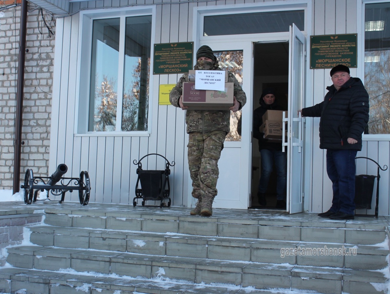 Владимир Лютиков, в свою очередь, передал бойцам книгу о моршанском лесхозе и очередную партию гуманитарной помощи.