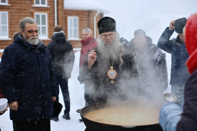 Традиционным и тёплым завершением праздника стало угощение всех гостей на площади перед храмом. По случаю престольного праздника для прихожан работала полевая кухня, где каждый мог попробовать горячую, наваристую уху, что создало атмосферу настоящего общинного единения и братской трапезы.