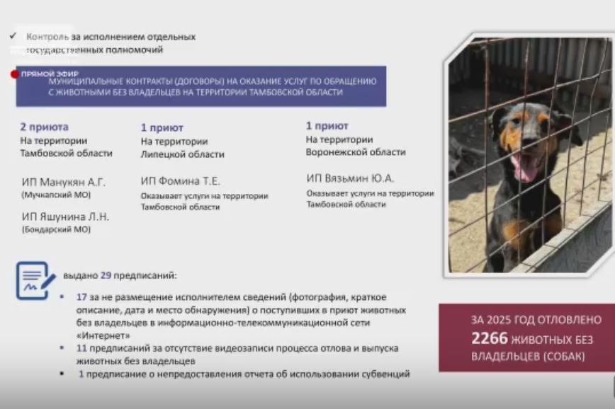 На оперативном совещании в региональном правительстве, которое провёл губернатор Тамбовской области Евгений Первышов, обсудили проблемы бездомных животных. Директор департамента ветеринарии Алексей Филин рассказал о результатах работы в 2025 году.