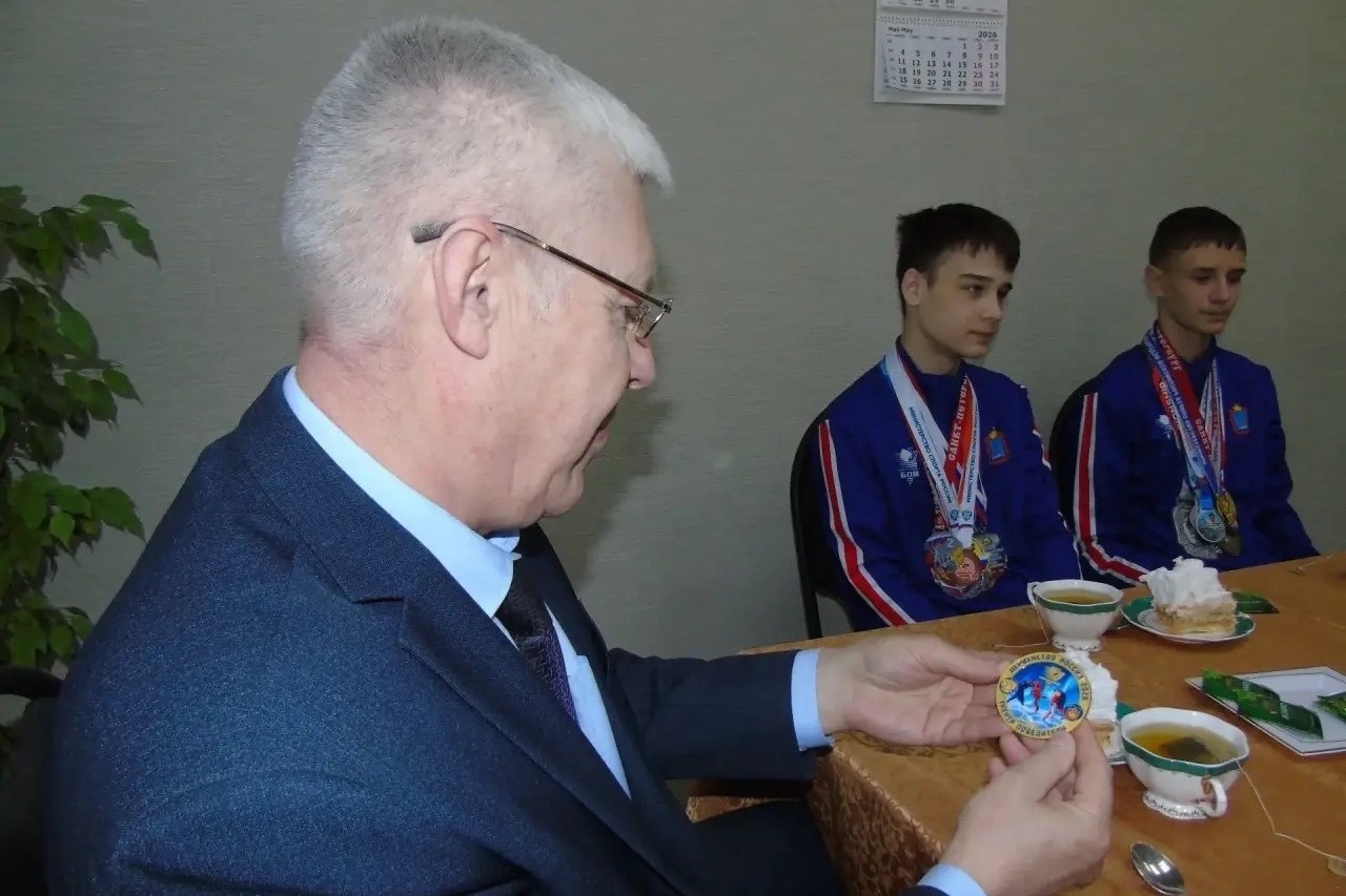 В гости к руководителю муниципальной исполнительной власти на чашку чая чемпионы пришли вместе со своим наставником, президентом областной Федерации универсального боя Валерием Медведевым. Представляя своих подопечных, тренер подчеркнул, что воспитанники клуба «Коловрат» показали себя с лучшей стороны, войдя в число сильнейших в своей возрастной группе.